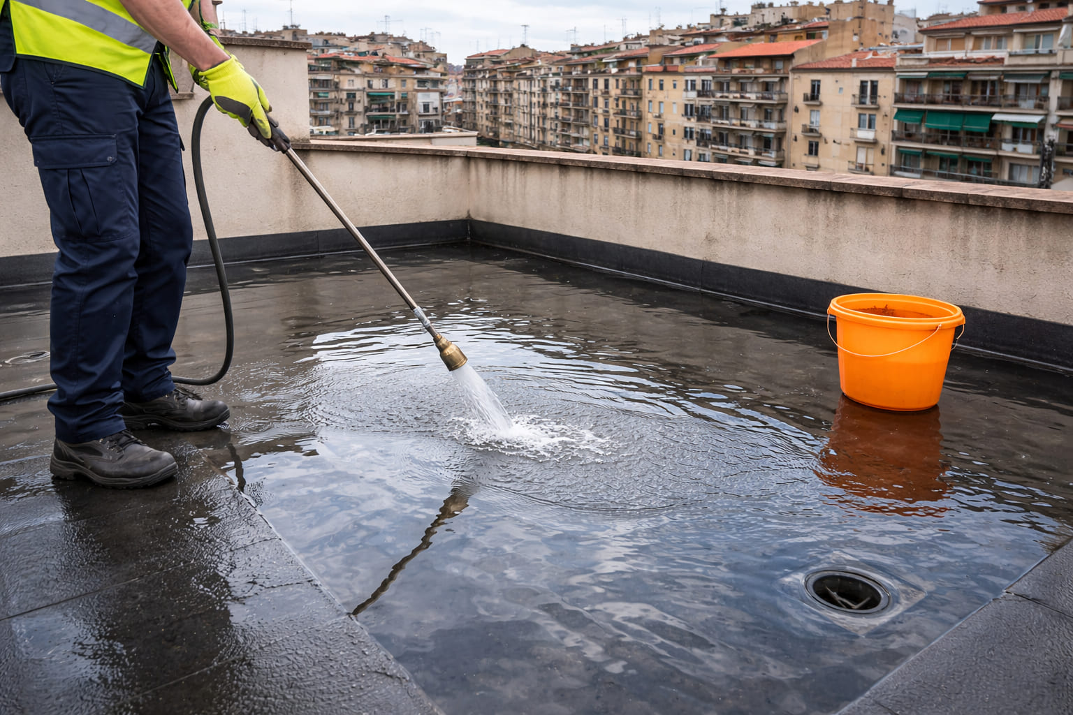 Este tipo de diagnóstico es especialmente útil en tres situaciones: cuando la filtración aparece de forma intermitente y no coincide visualmente con ningún defecto aparente en la cubierta, cuando se ha realizado una reparación previa que no ha resuelto el problema, y cuando hay varios posibles orígenes y es necesario descartar uno a uno antes de intervenir. También es habitual solicitarla como verificación final después de una obra de impermeabilización, para confirmar que el sistema instalado es completamente estanco. En el caso de terrazas y terrados, la prueba de estanqueidad forma parte del protocolo habitual de entrega de obra en intervenciones de cierta envergadura.